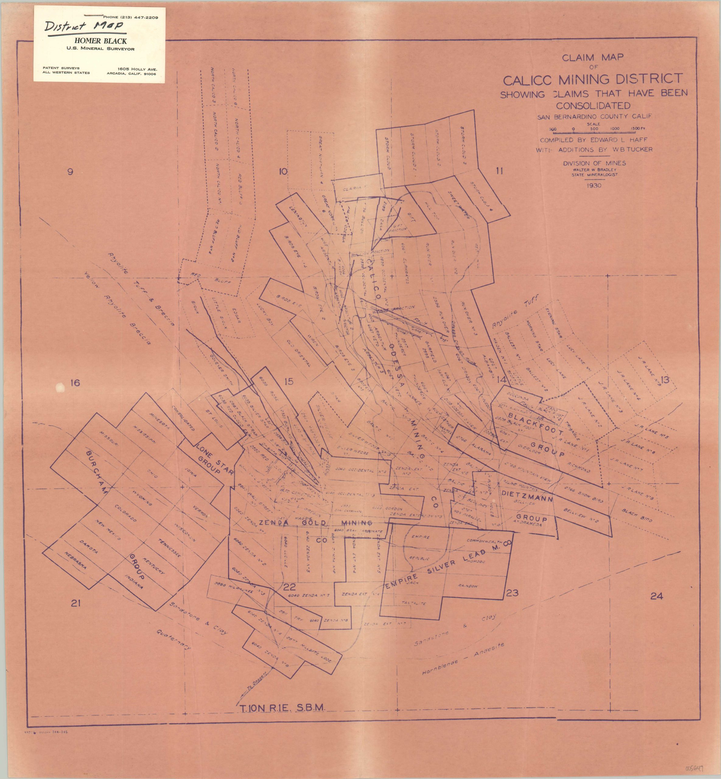 Claim Map of Calico Mining District Showing Claims That Have Been Consolidated