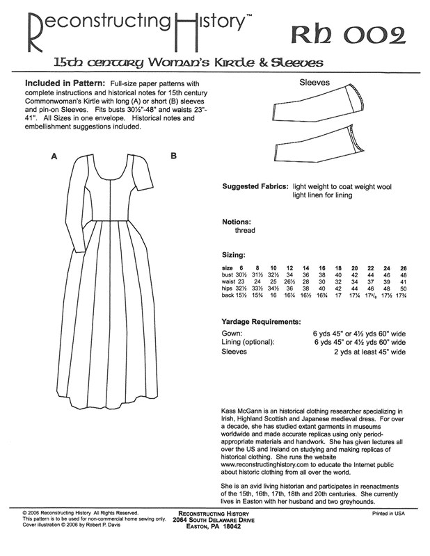 RH002: 15TH CENTURY WOMEN?S KIRTLE & SLEEVES