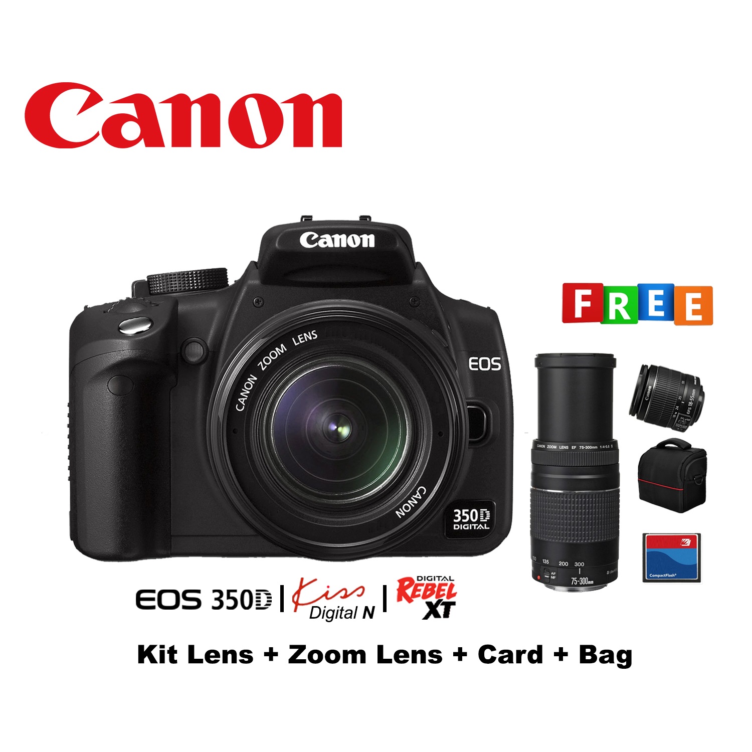 Canon EOS 350D | Kiss Digital N | Rebel Digital XT Kit Lens Zoom Lens Card Bag