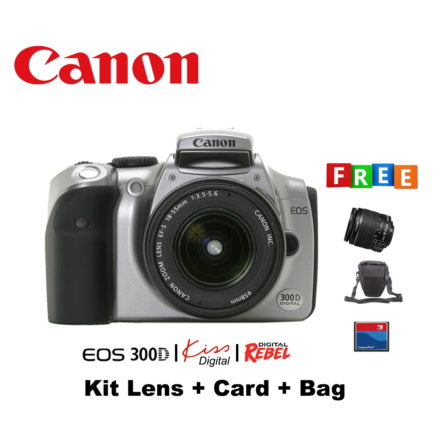 Canon EOS 300D | Kiss Digital | Rebel Digital Kit lens Card Bag