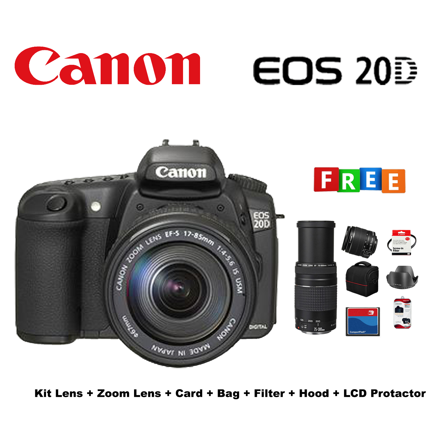 Canon EOS 20D Kit lens Zoom Lens Card Bag Hood Protector Filter