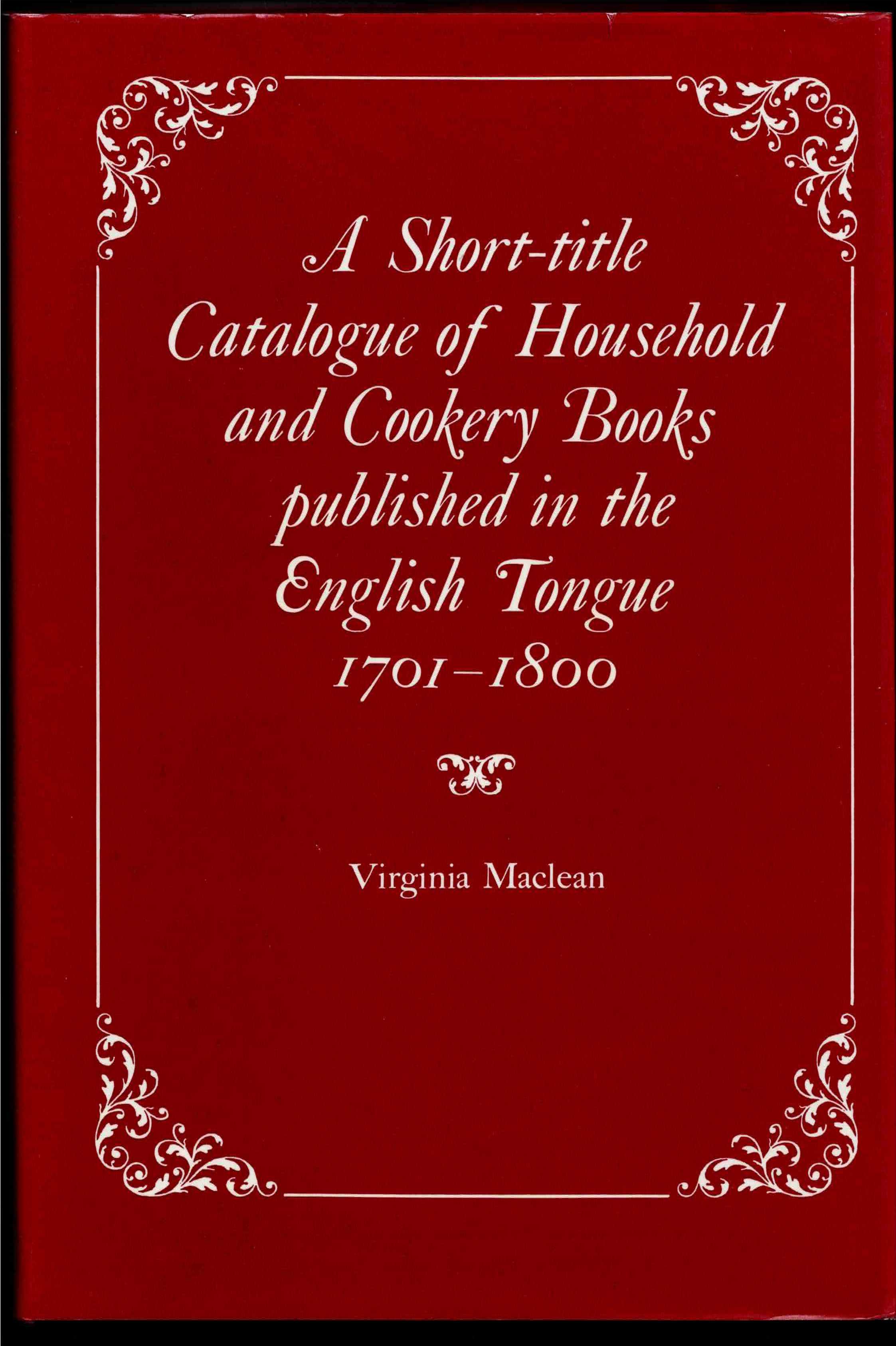 A SHORT-TITLE CATALOGUE OF HOUSEHOLD AND COOKERY BOOKS PUBLISHED IN THE ENGLISH TONGUE 1701-1800