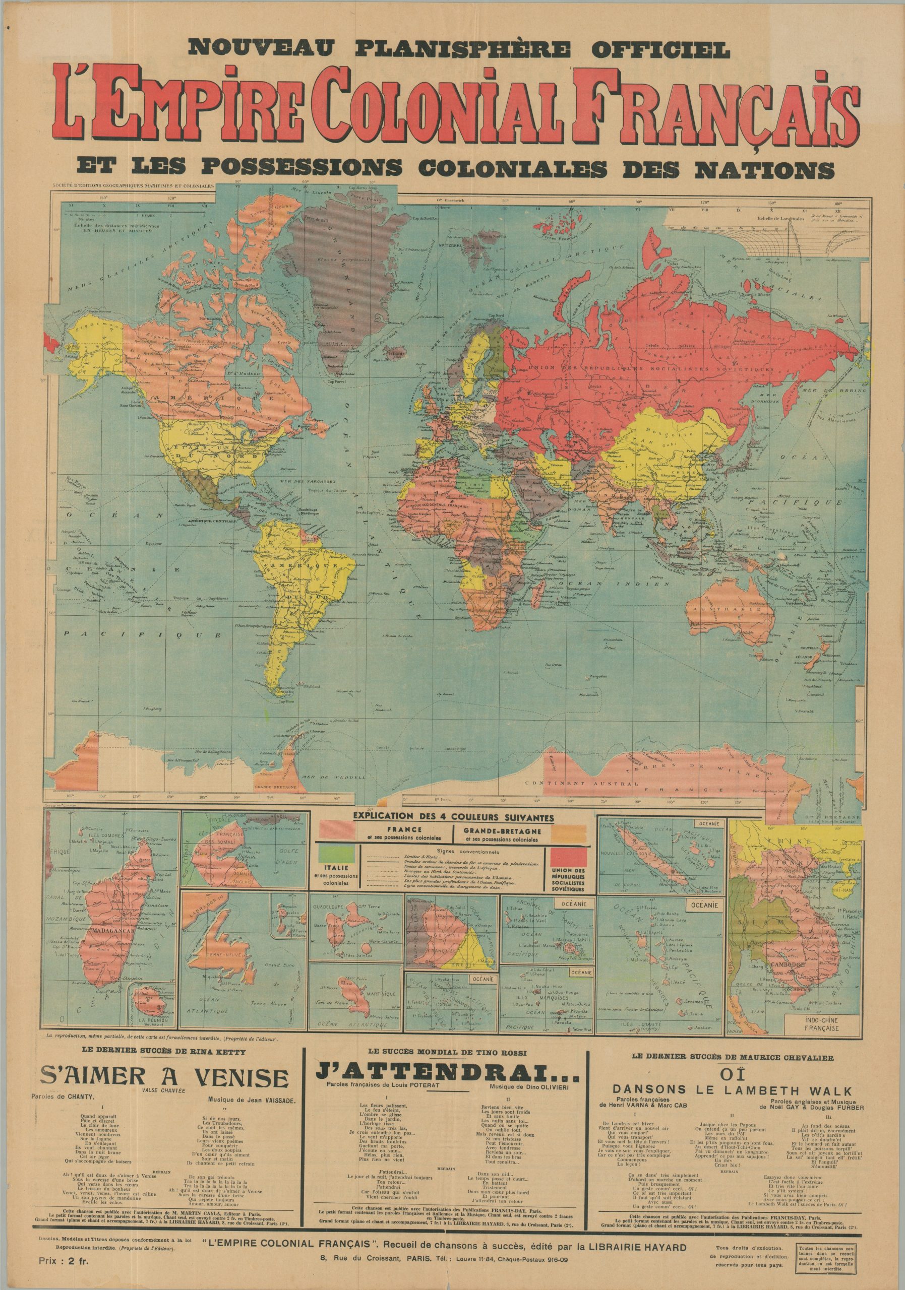 Nouveau Planisphère Officiel L’Empire Colonial Francais et les Possessions Coloniales des Nations