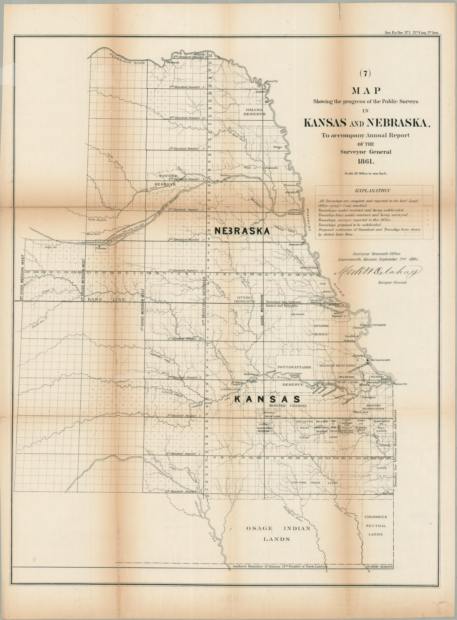Map Showing the Progress of the Public Surveys in Kansas and Nebraska